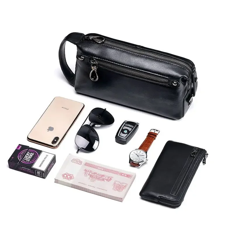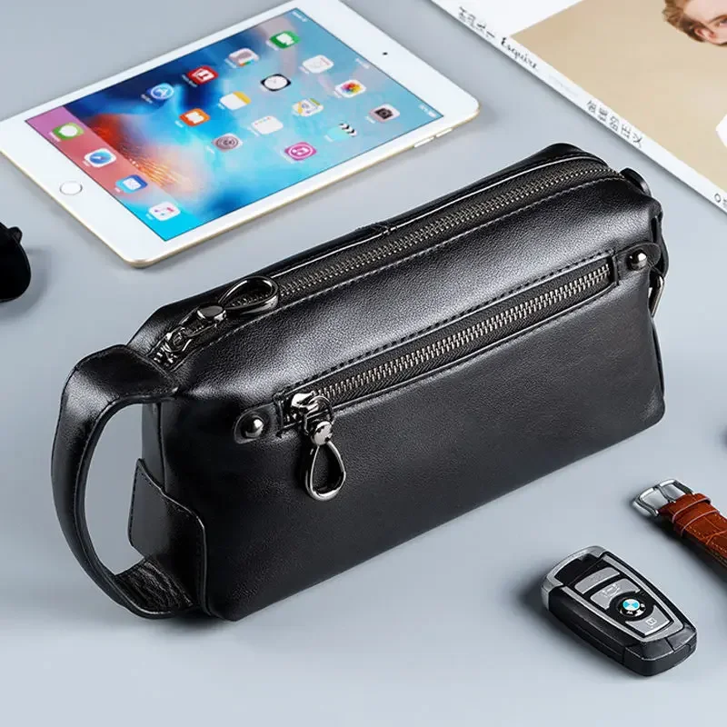 2024 New Fashion Men Large Clutch Cow Genuine Real Leather Boy Handbags Luxury Brand Business Clutches Male Wallets Cash Purses