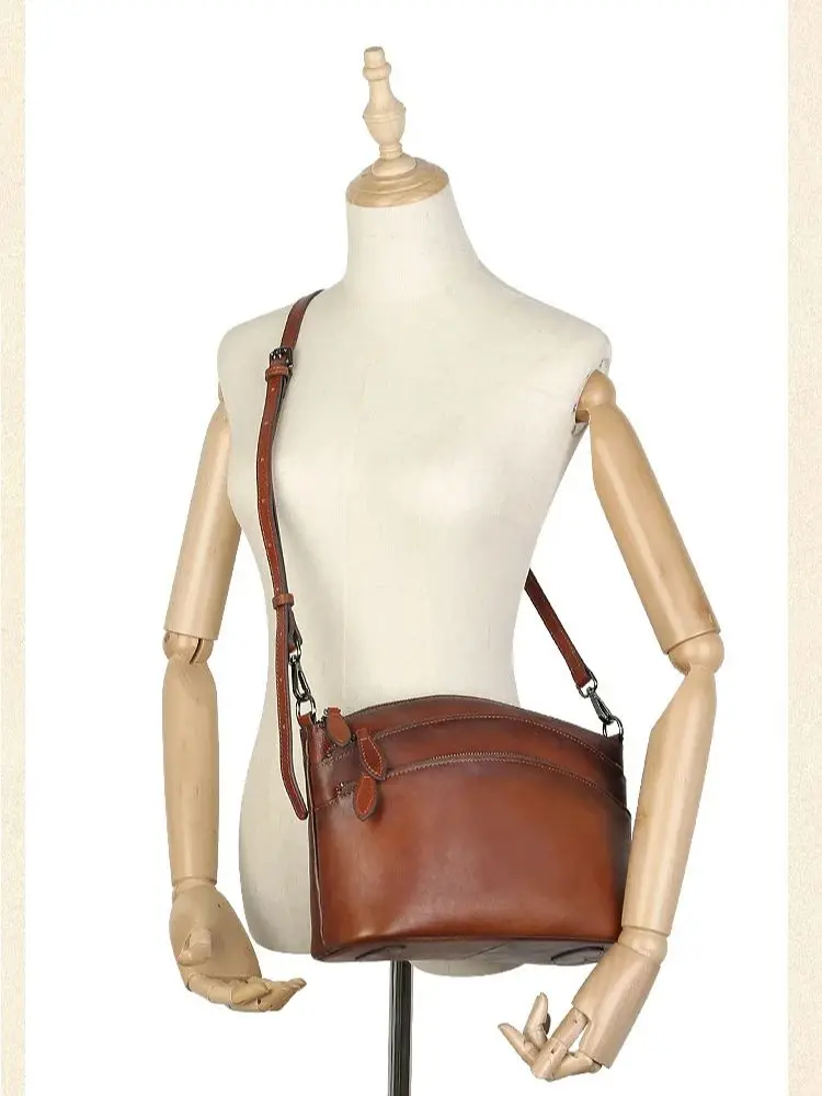 2025 high quality geniune cowhide leather Shell Hobo bag Women handbag vintage shoulder crossbody Zipper bag large for work