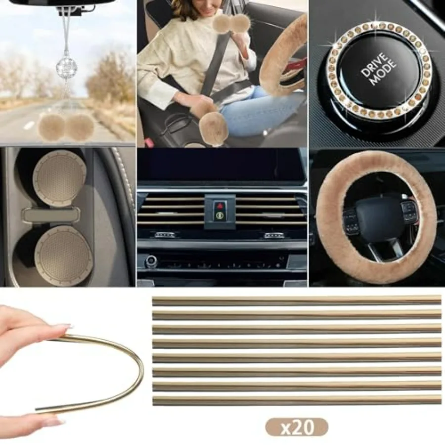 47 Car Seat Cover Full Set for Women Including Front Rear Seat Fluffy Steering Wheel Cover Belt Automotive Floor Mats Air Condi
