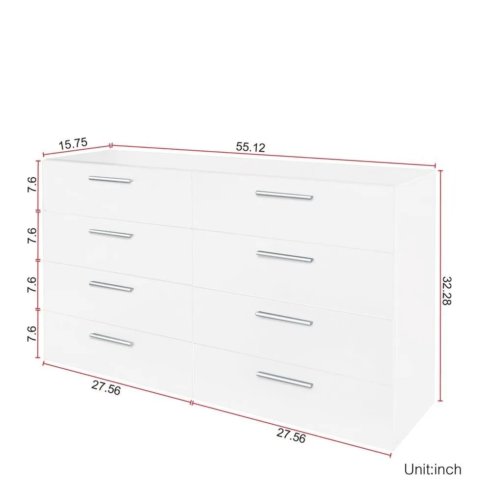 8-Drawer Double Dresser Bedroom Cabinet Storage Organizer for Home Hallway