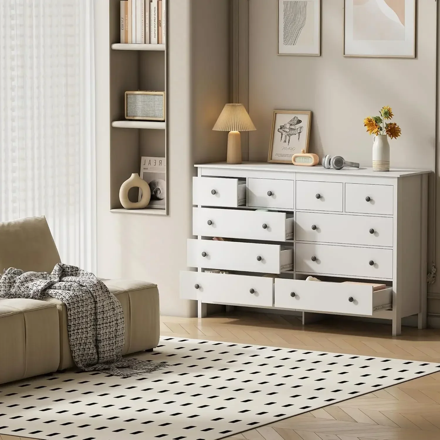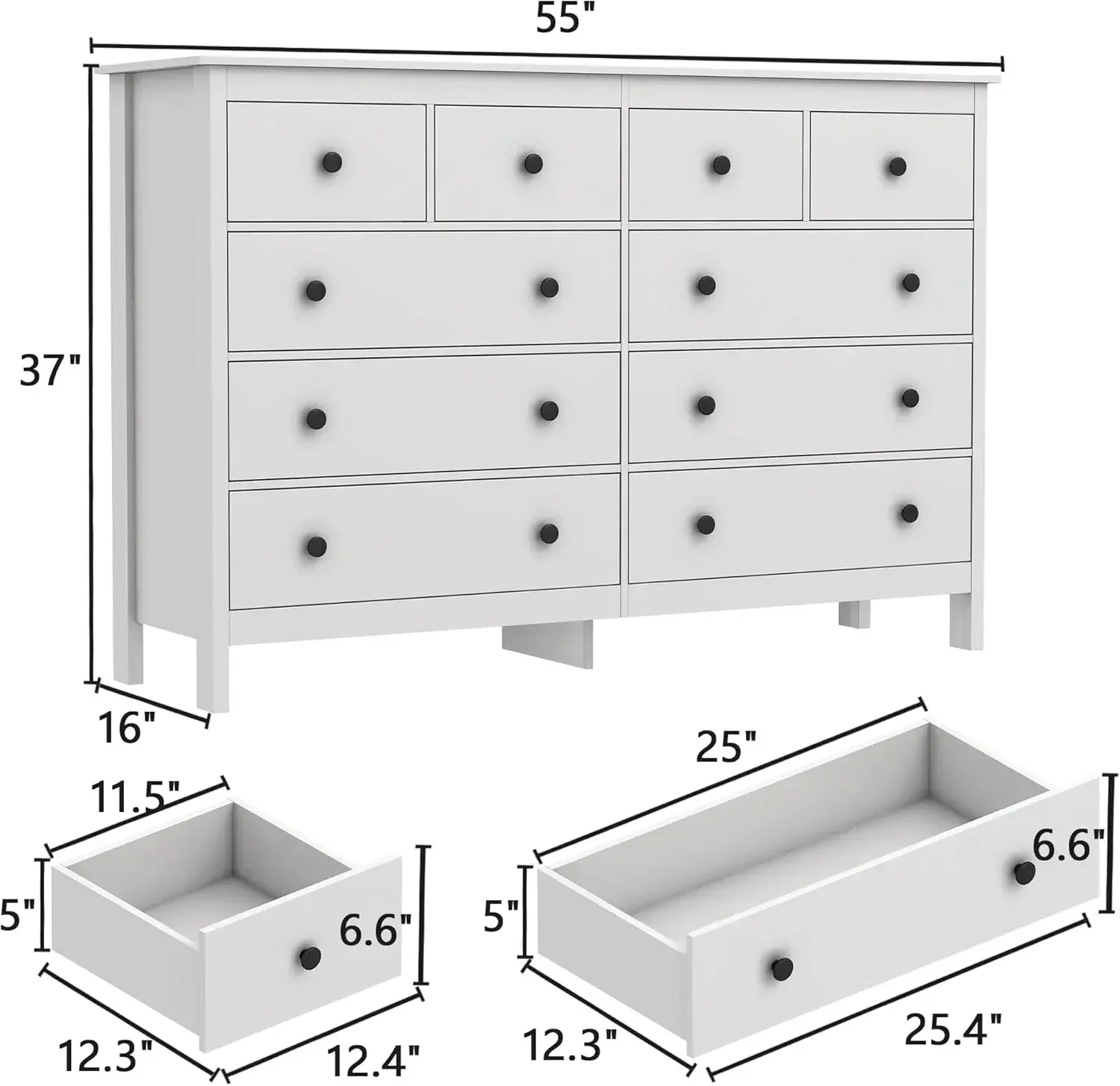 10 Drawer Dresser, 55″ Modern White Dressers and Chests of Drawers, 10 Drawer Wide Dressers for Bedroom