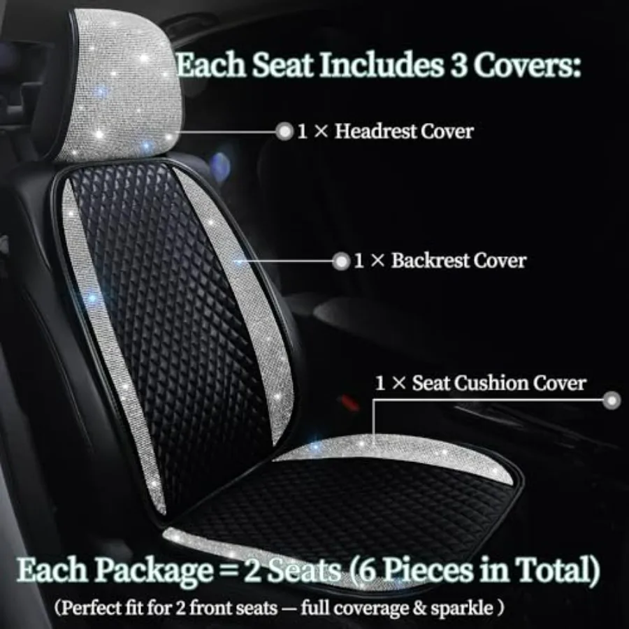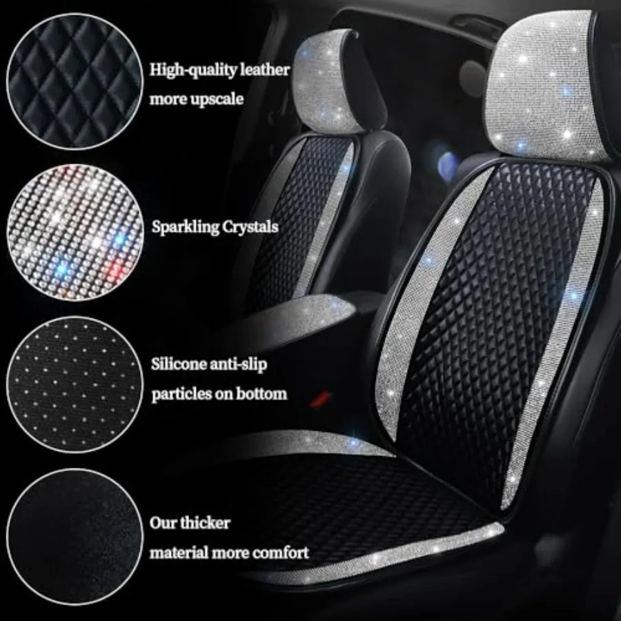 Bling Crystal Rhinestones Car Front Seat Covers for Women Shining Diamond Seat Protectors Anti-Slip Bottom Seat Cushion Covers