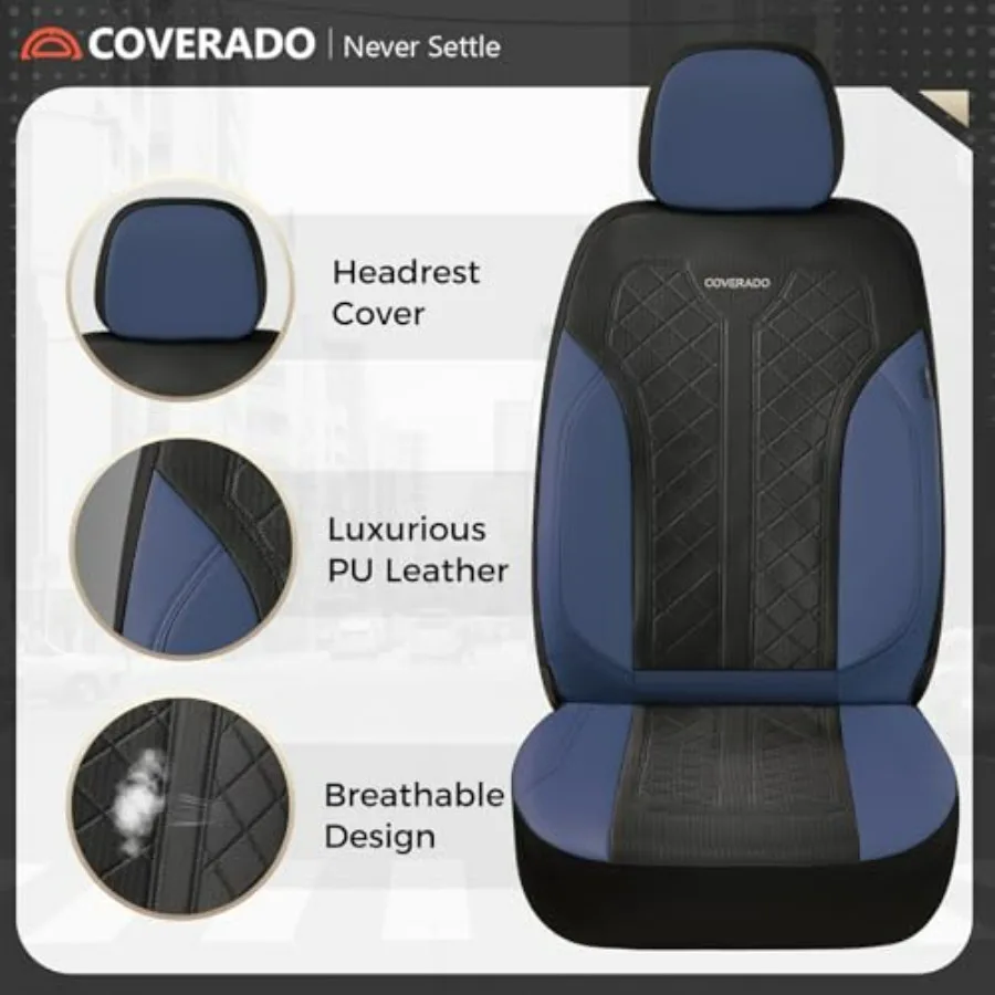 MH124 2-seat all season Universal quilted PU leather car seat cover fully wrapped waterproof suitable for sedan/off-road vehic