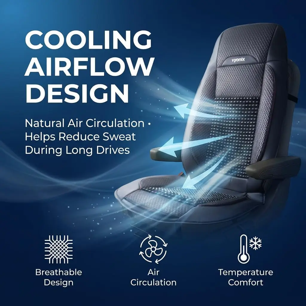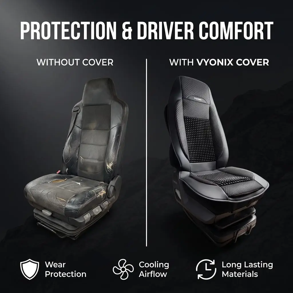 Cooling Beaded Seat Covers for Semi Trucks, Ergonomic Back Support & Anti-Sweat Design, Universal Fit
