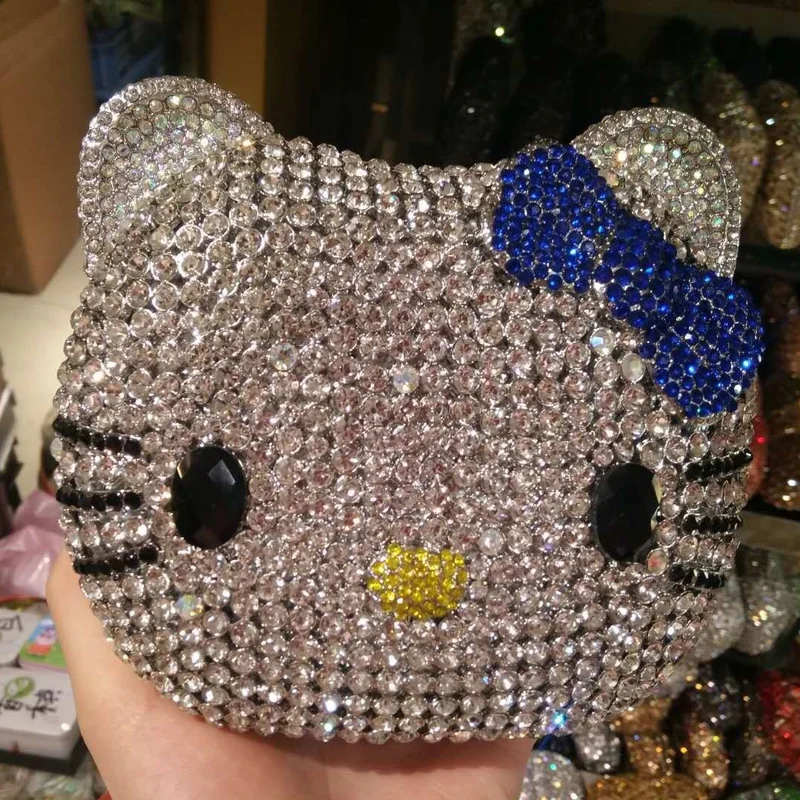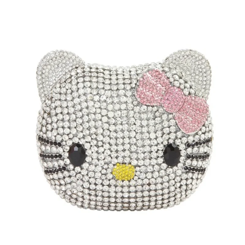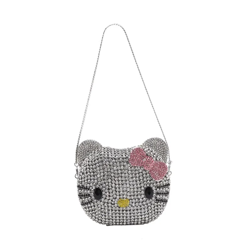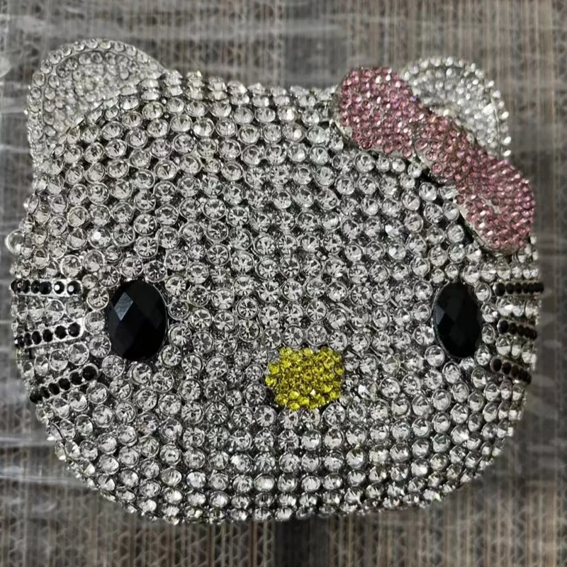 Cute Cartoon Hello Kitty Rhinestone Mini Bag Anime Full Of Diamonds Dinner Bag Handmade Diamond Lady's Clutch Girls Xmas Gifts