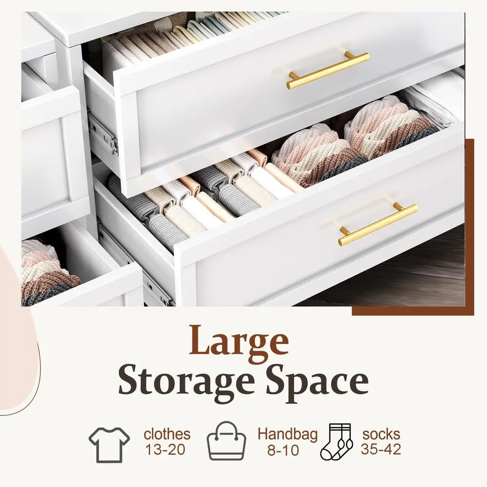 LARGE CAPACITY chest of drawers has multiple drawers and a flat design to meet different storage needs. Measuring 15.74D x 31.5W x 53.54H. The size of a single drawer is 13.9D x 28.58W x 7H, you can easily store clothes, books, toys, office supplies and so on.