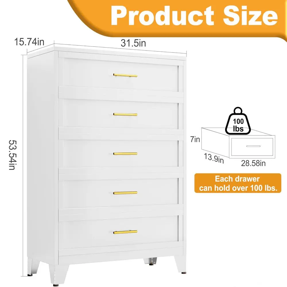 Dresser, White Tall Dresser for Bedroom, 53.54 H Dressers amp Chests of Drawers, 5 Drawer Dressers for Living Room, Entryway, H