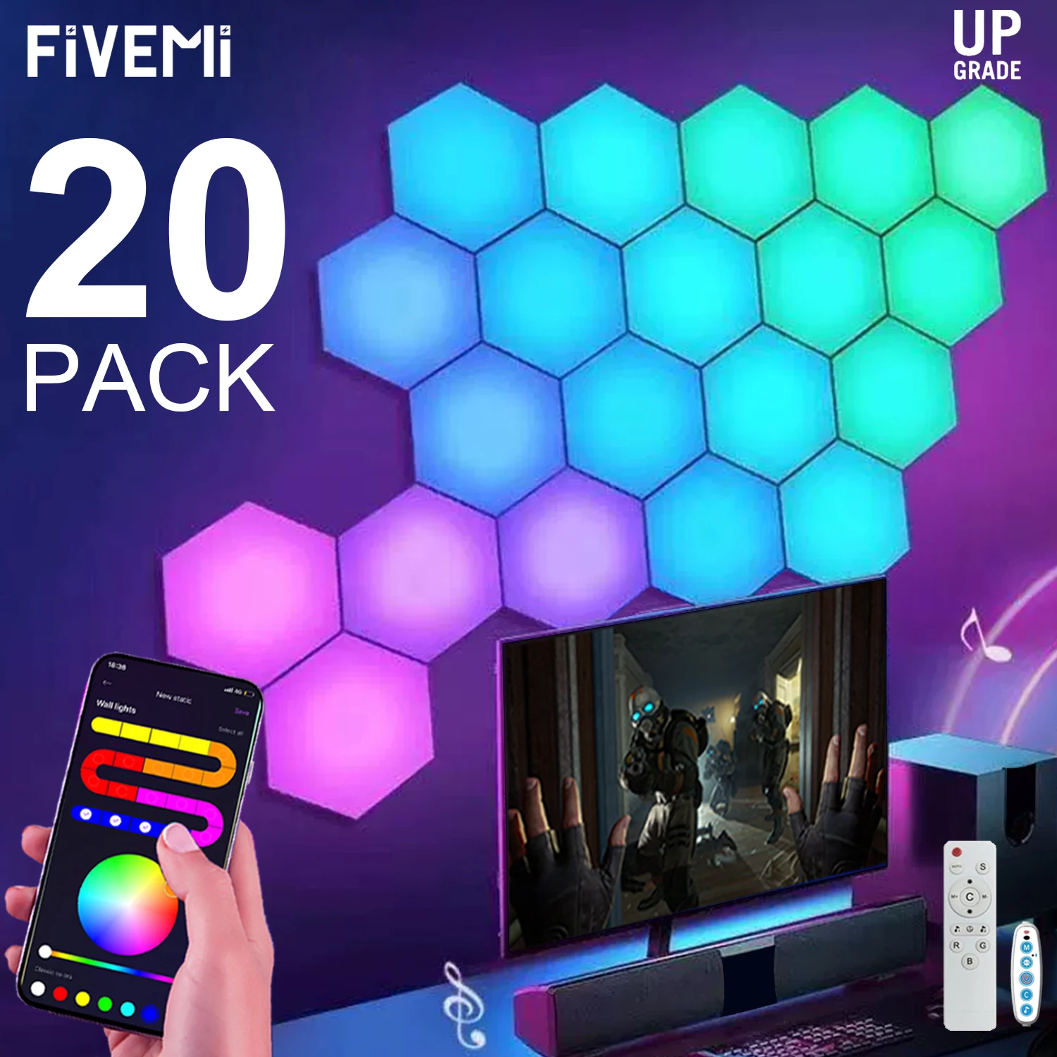 Fivemi RGB Smart Hexagonal Wall Lamp Color Changing Ambient Night Light Hexagonal DYI Music Rhythm APP Control Game Room Bedroom