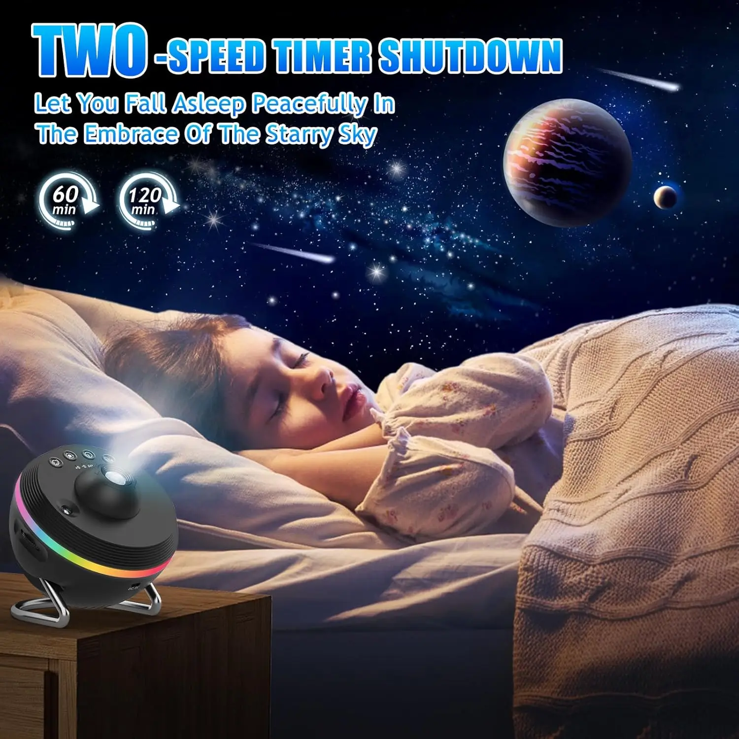 ⏰��【Intimate Timing Design, Accompany Children to Sleep Peacefully】 Star night light projector is equipped with a timed shutdown function, which can be set to automatically shut down in 1 hour or 2 hours, and you no longer need to worry about forgetting to turn off the lights. The warm starry sky scene will help you and your children fall into a relaxed sleep state, making every night as peaceful and comfortable as being under the starry sky, bringing a deeper level of peace of mind to sleep.