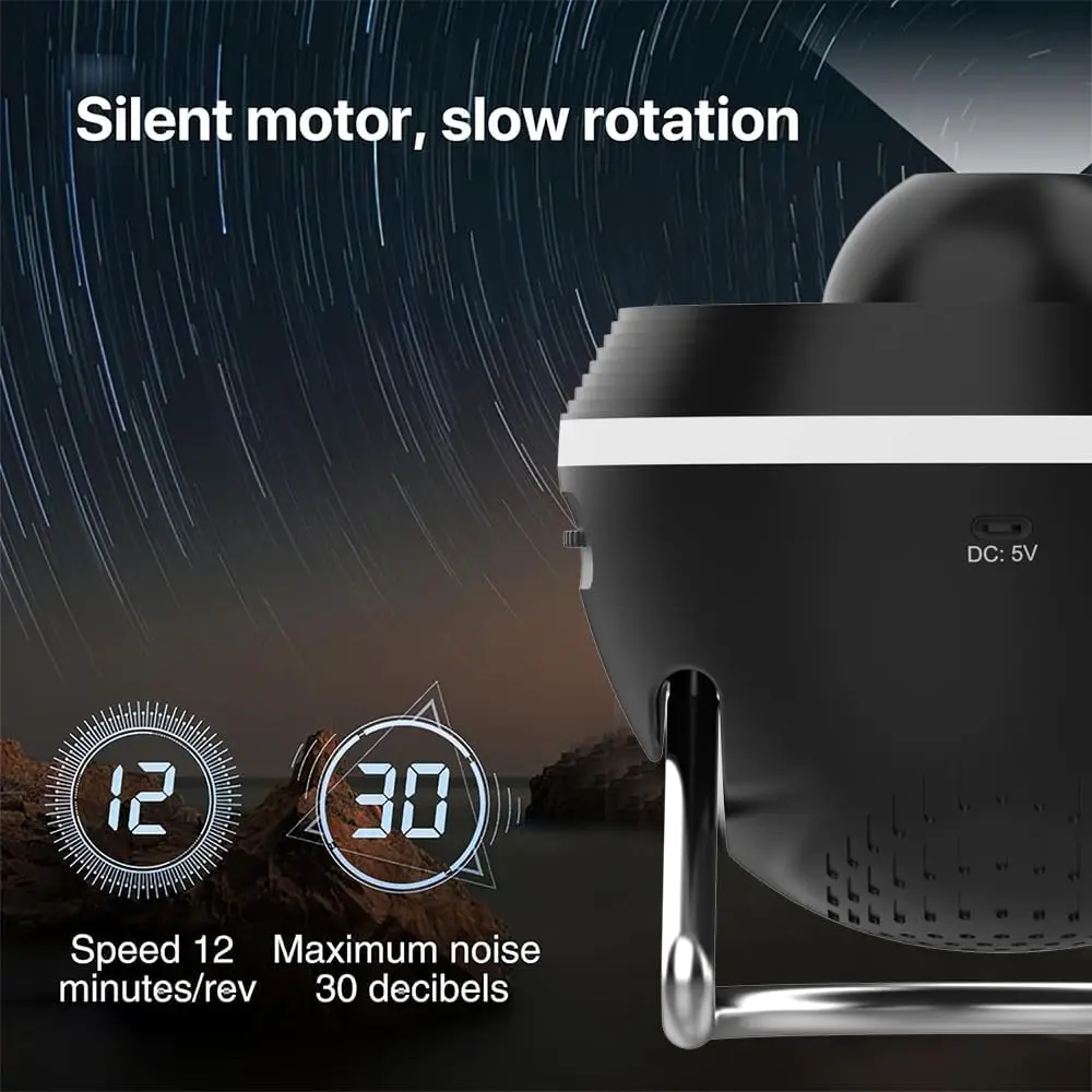 ����【Dynamic Galaxy Effect, Bring the Starry Sky Home】 This star projector galaxy light supports dynamic star tracks and meteor shower effects, equipped with a silent central axis motor, and the rotation speed can be freely adjusted in 6min/13min, bringing an immersive experience as if you are in the universe. The star tracks flow quietly, and the meteor showers cross the night sky, adding a unique romance and mystery to your room, as if bringing the real night sky into your home.