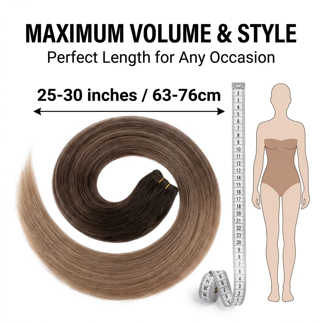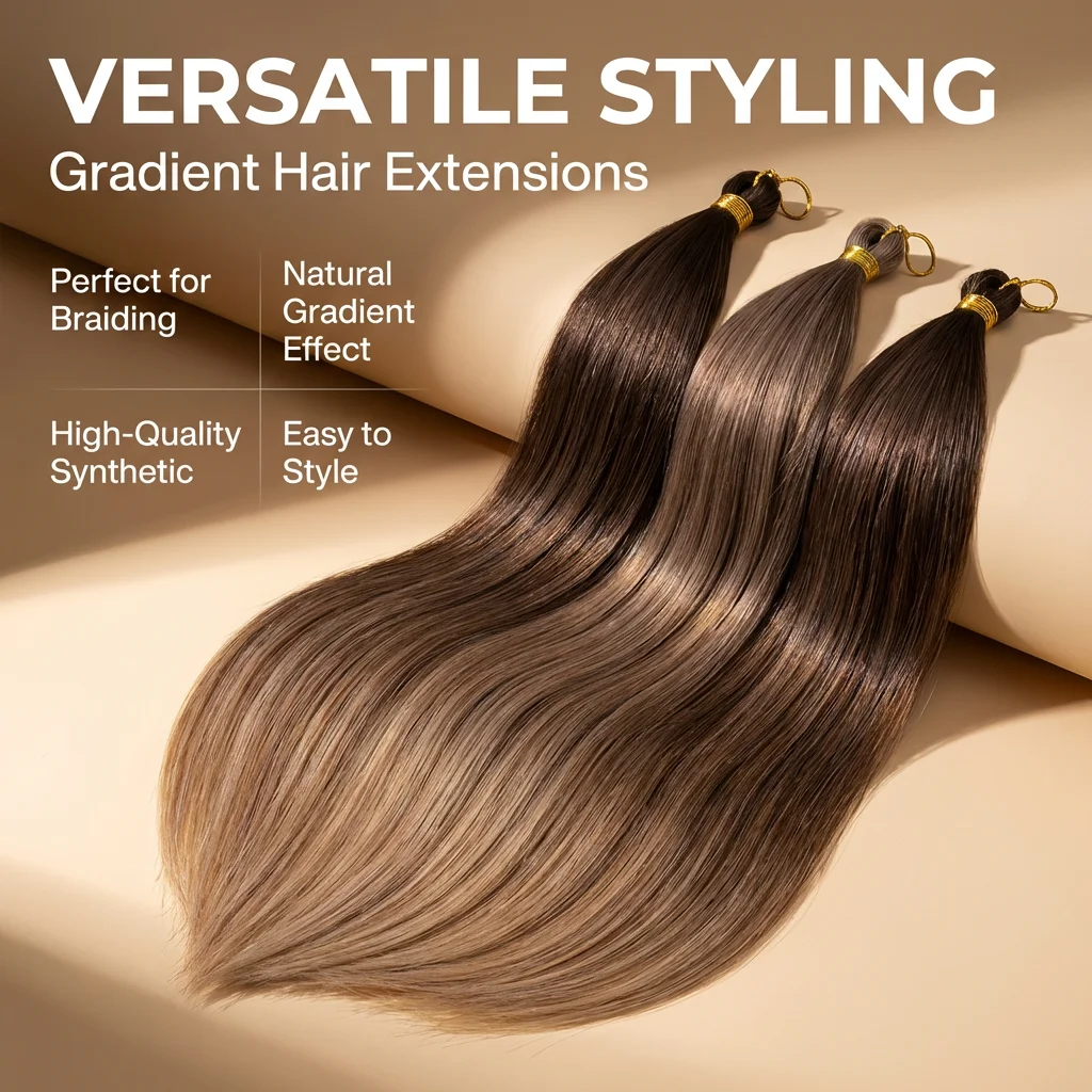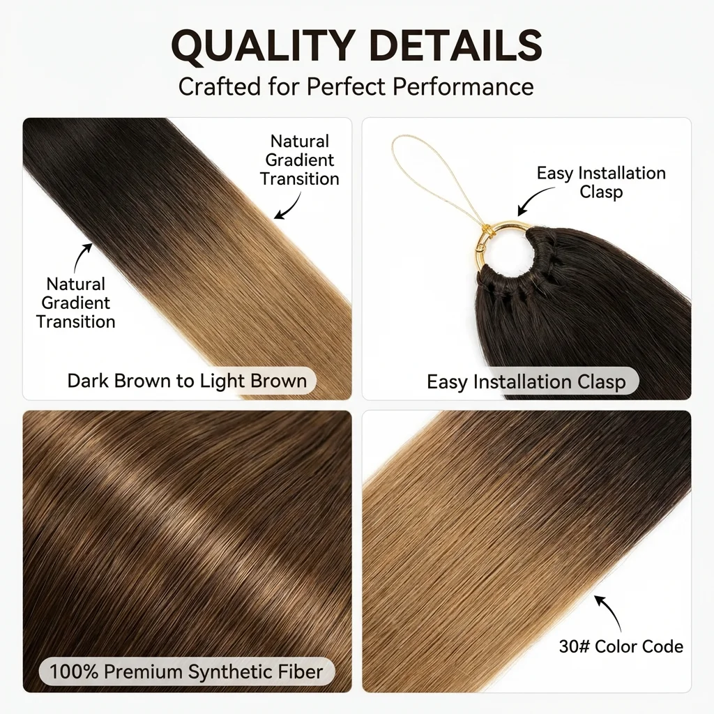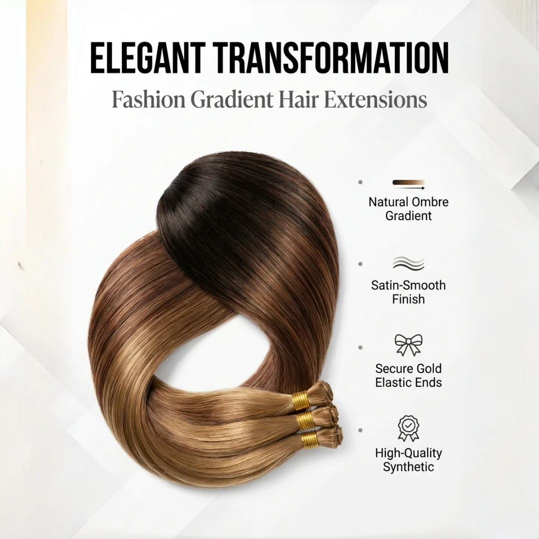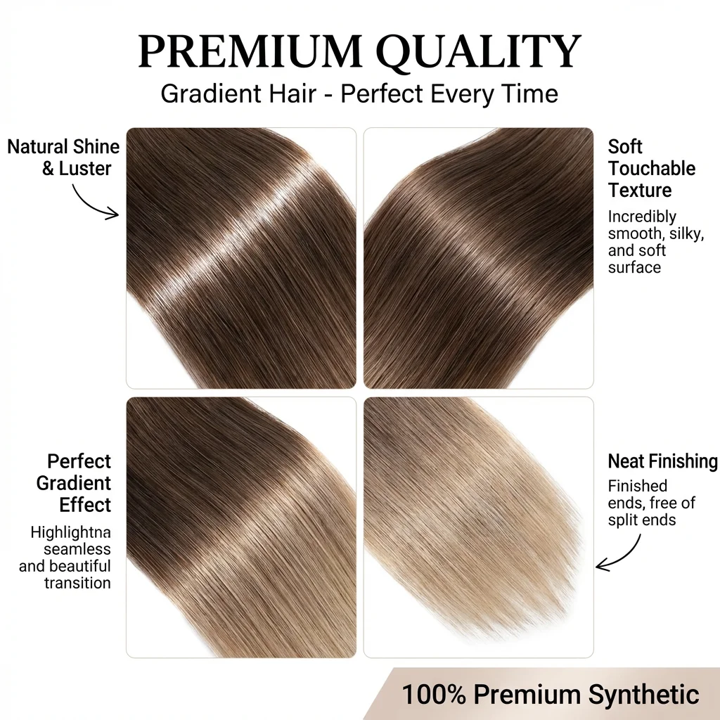 Gradient Brown Straight Hair Extensions, 30-inch Heat Resistant Synthetic Hair, Natural Gradient Effect, Easy to Install