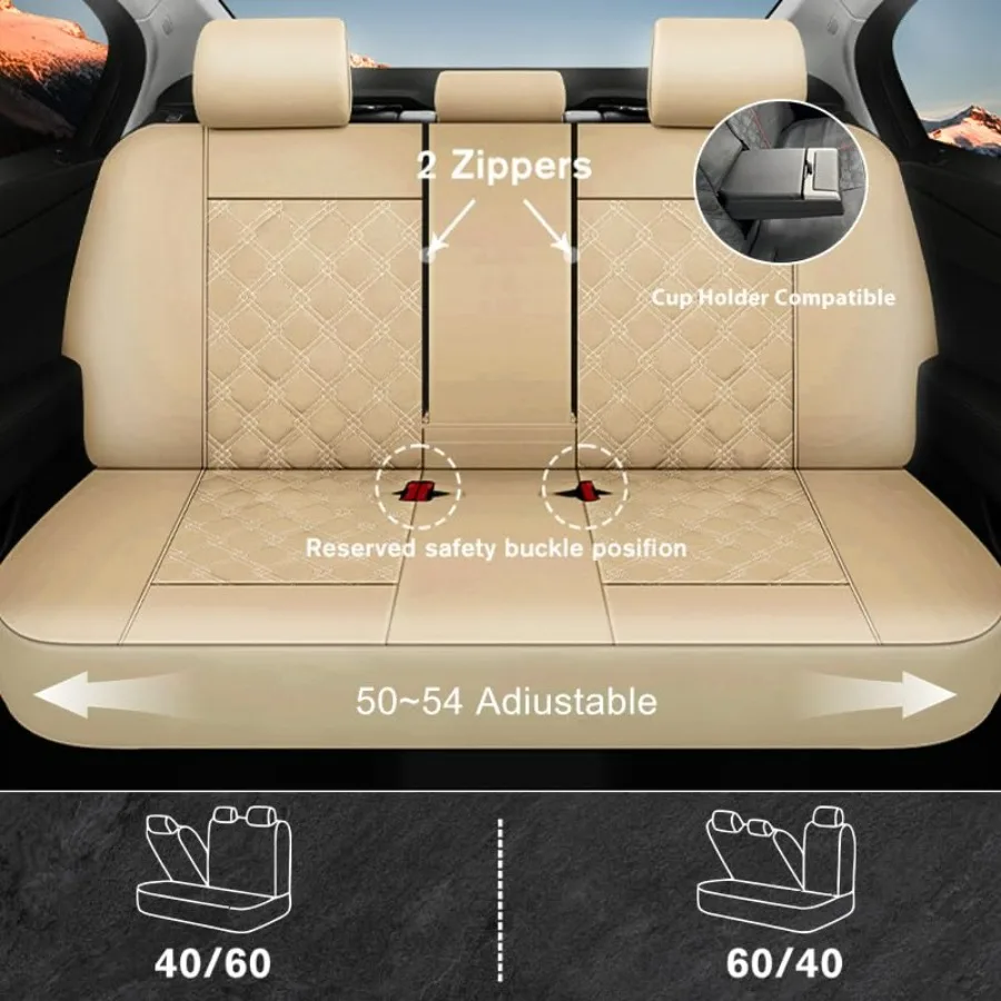 Luxury PU Leather Car Seat Covers Full Set Waterproof Seat Protectors with Split Bench Seat Covers for Cars Universal Cars Inte