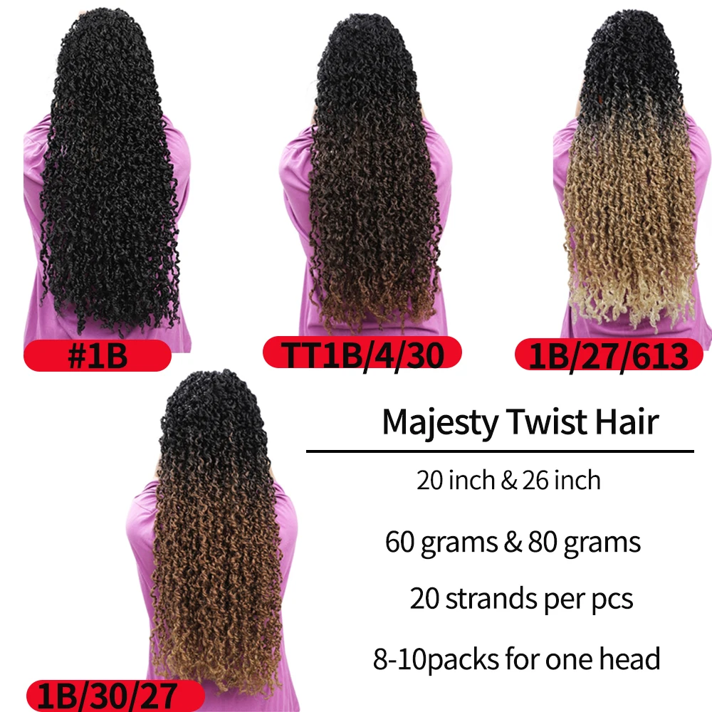 Majesty Twist Hair Curly Passion Twist Crochet Hair 26” Long Synthetic Braiding Hair Extension Pre-Looped Senegalese Twist