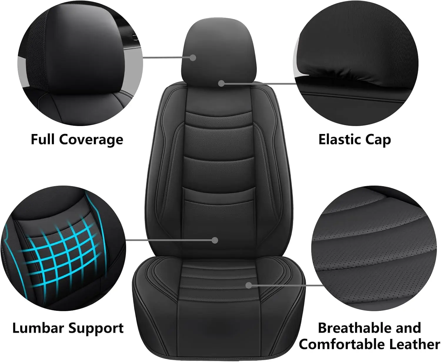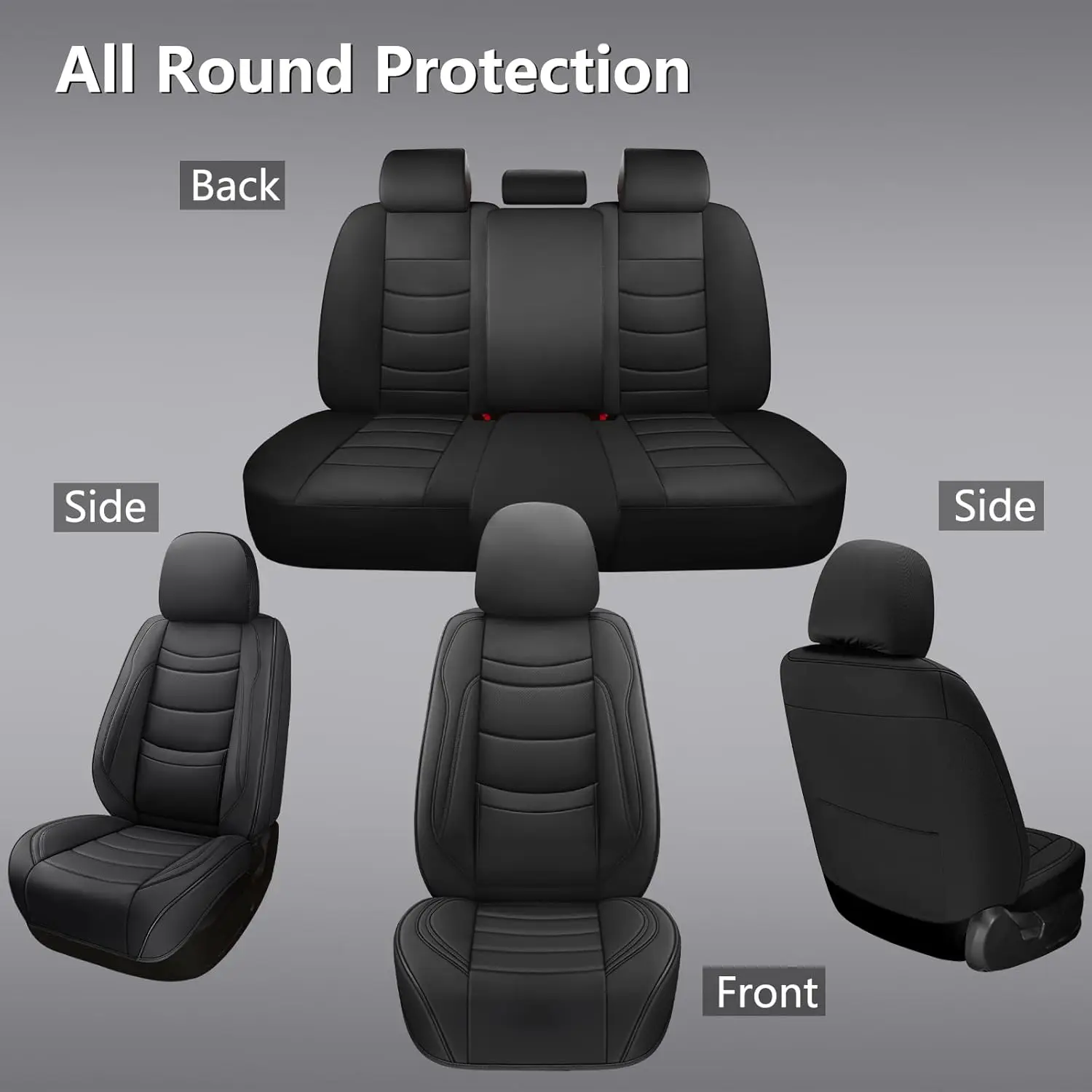 Universal Leather Car Seat Covers Full Set, Waterproof Luxury Leatherette for Most Cars SUVs Sedans, 5 Seats Black